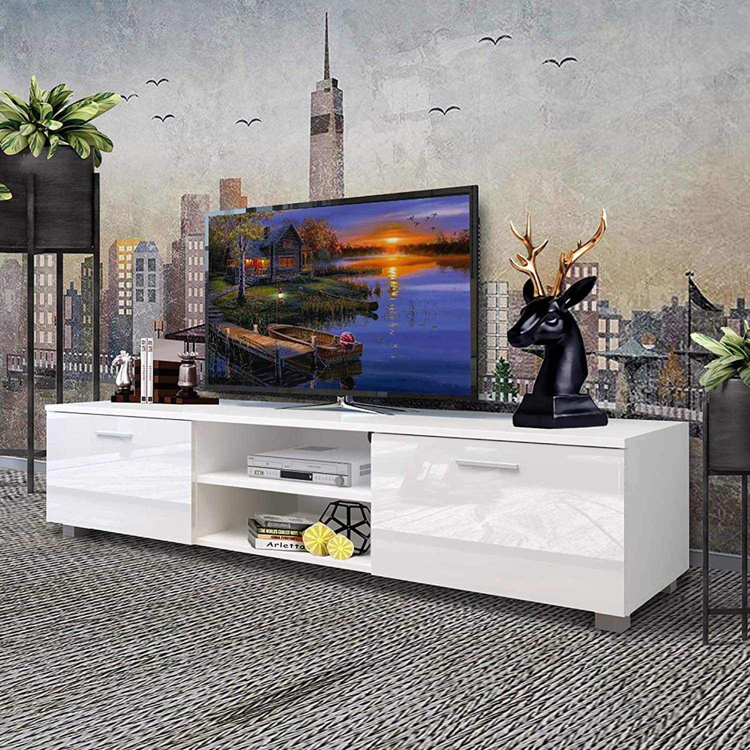 Bestier 63 Inch Modern Tv Stand 20 Color Led Entertainment Center Tv Console High Glass Television Stand With 2 Layers Storage Cabinet For Living Bedroom Up To 75 Inch Tv Walmart Com
