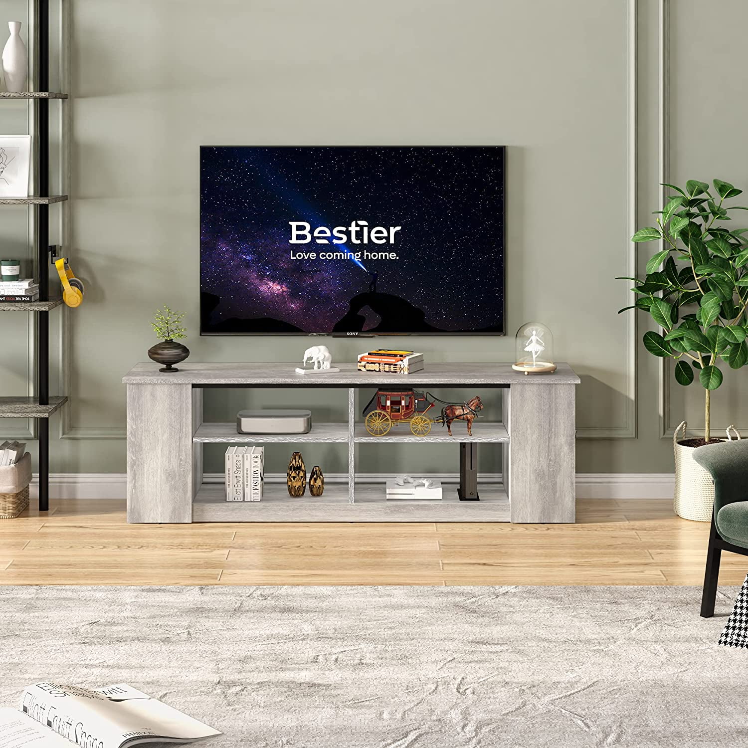 Bestier 55 Inch Tv Stand Console Table With 8 Separate Adjustable Storage Units Wash Grey Walmart Com