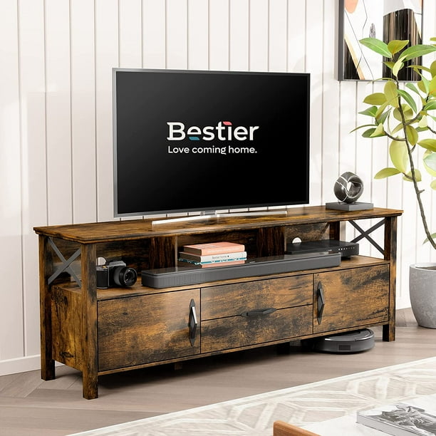 Amazon Com Bestier Tv Stand For 55 Inch Tv Industrial Tv Console Table For Tv Up To 65 Wood Entertainment Center With Storage Shelves Modern Tv Cabinet For Living Room Retro Oak