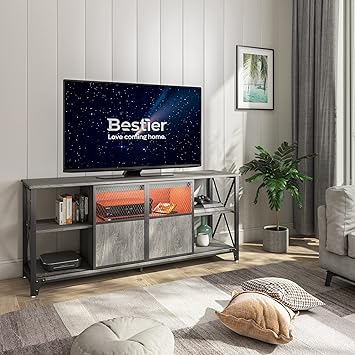 Amazon Com Bestier 70 Inch Mid Century Modern Tv Stand For 75 Inch Tv Low Profile Tv Stand With Storage Entertainment Cente For Living Room Cord Management Gray Home Kitchen