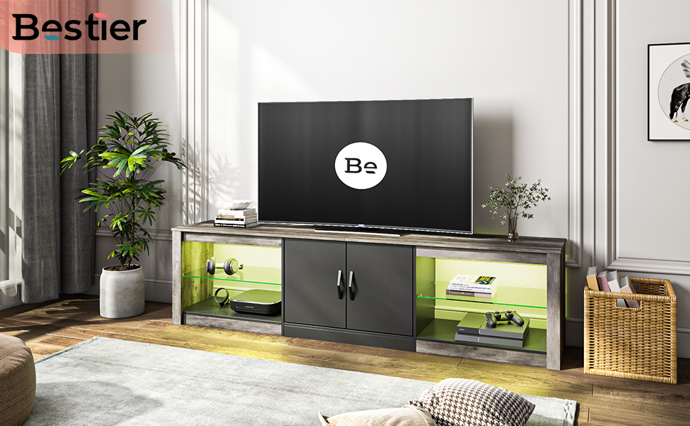 Amazon Com Bestier 70 Modern Tv Stand 20 Color Rgb Light Entertainment Center Media Console 6 Storage Glass Shelves Television Cabinet For Tvs Up To 75 For Dvds Game Devices In The Living Room